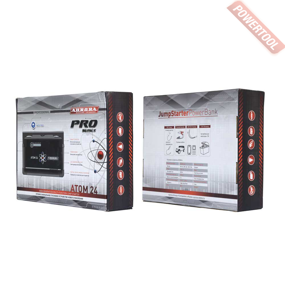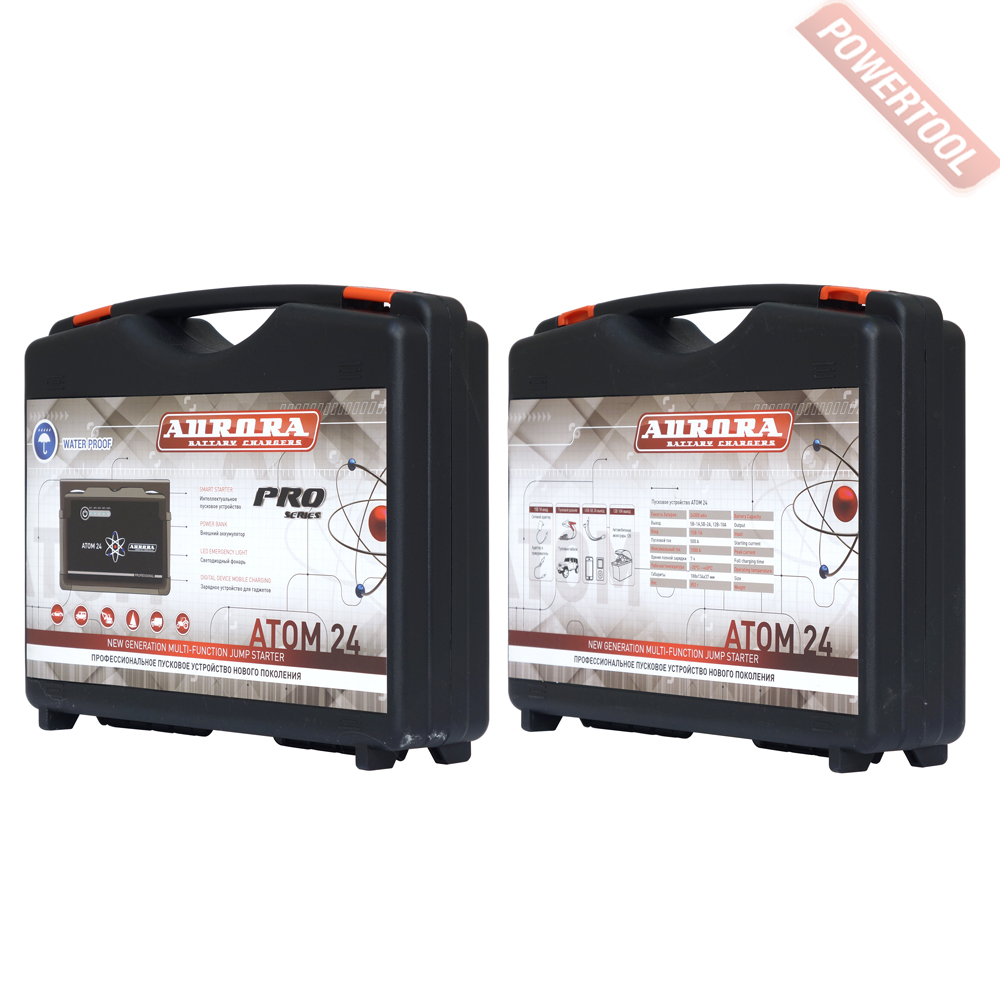 Автономное пусковое устройство AURORA Atom 24 профессиональное пусковое устройство нового поколения, оснащённое встроенным литий-полимерным аккумулятором LiPo. Предназначено для запуска двигателей мотоциклов, автомобилей, генераторов и прочих устройств для питания которых используется 12В аккумуляторы. Мощности устройства хватит для запуска практически любых бензиновых и дизельных двигателей легковых машин. С помощью АТОМ 24 можно заряжать и питать мобильные телефоны и планшеты, энергоёмкое автомобильное оборудование (компрессоры, автохолодильники и т.д.). Благодаря малому весу и компактным габаритам ATOM 24 можно использовать в походе, в командировке или на рыбалке. Все выходы устройства защищены резиновыми заглушками. Класс влагозащищенности - IP 64. Профессиональное исполнение гарантирует максимальную функциональность и продолжительную работу устройства в особенно тяжелых и неблагоприятных условиях.