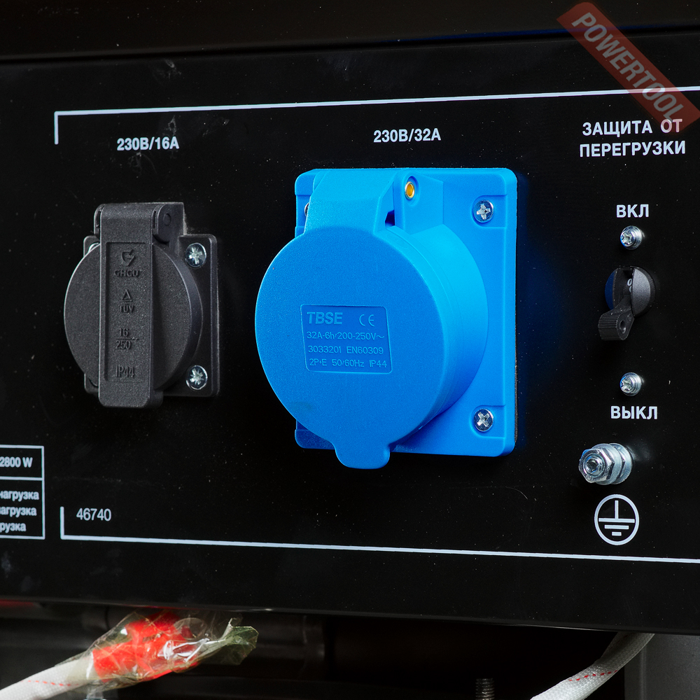 - Розетки 230 В / 16 А и 230 В / 32 А.