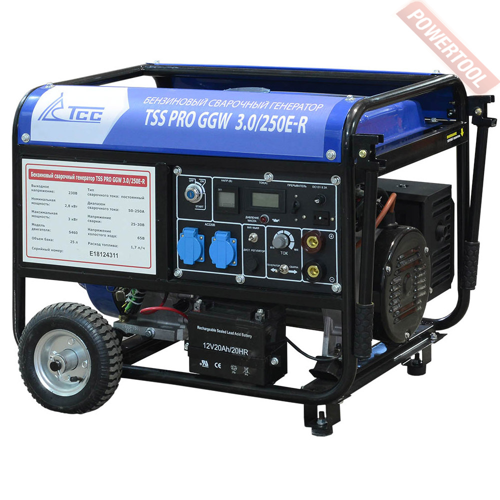 Сварочный генератор бензиновый автономный инвертор для ручной электродуговой сварки MMA постоянным током, напряжение 230 В, мощность 2,5 кВт, номинальный ток 10,8 А, сварочный ток 50-300 А, диаметр электрода 1,6-6 мм, 4-тактный бензиновый двигатель FUBAG GF 680 мощностью 18,5 л.с., топливный бак 45 л, расход топлива 4,5 л/ч, ёмкость картера 1,1 л, электростартер, механическая регулировка сварки, байонетные разъемы, 1 розетка 230В/16А, цифровой дисплей, автоматический контроль масла, габариты 730х770х915 мм, вес 150 кг.