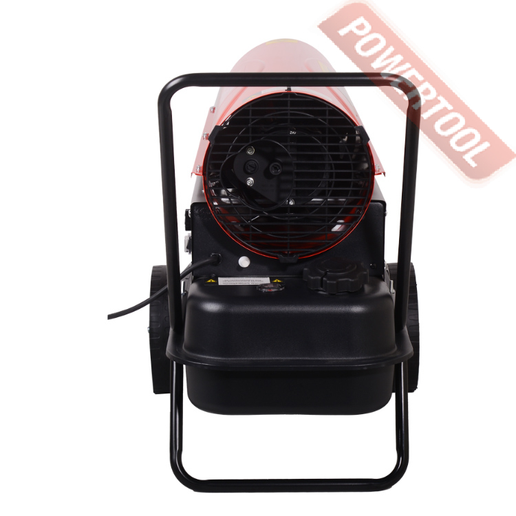 • Транспортировка. По своим характеристикам имеет компактные габариты и вес, что делает ее эргономичной и удобной для перевозки. Колеса и удобная рукоятка позволяют с легкостью перемещать тепловую пушку по объекту.