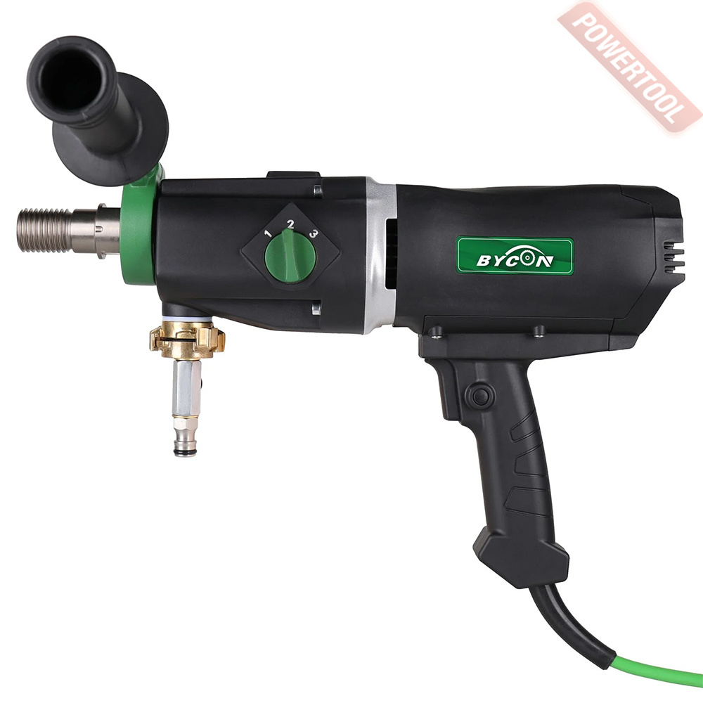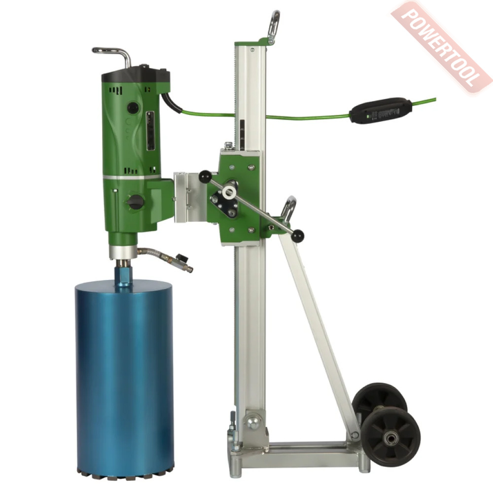 Дрель алмазного бурения ROTHENBERGER RodiaDrill 160 используется при обработке бетона и кирпича. Предназначен для работы с коронками диаметром от 10 до 162 миллиметров и типом посадки 1/2 и 1 1/4 дюйма. Применяется совместно со станиной. Электрический мотор с потребляемой мощностью 2000 Вт обеспечивает частоту вращения шпинделя до 1050 оборотов в минуту. Предусмотрены две рабочие скорости, что позволяет выбрать оптимальный режим сверления. Питание осуществляется от стандартной сети с переменным током 220 В/50 Гц.