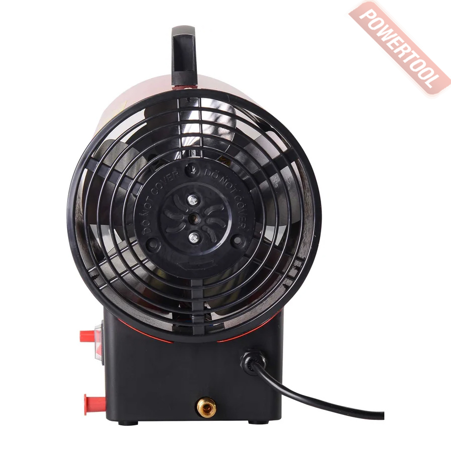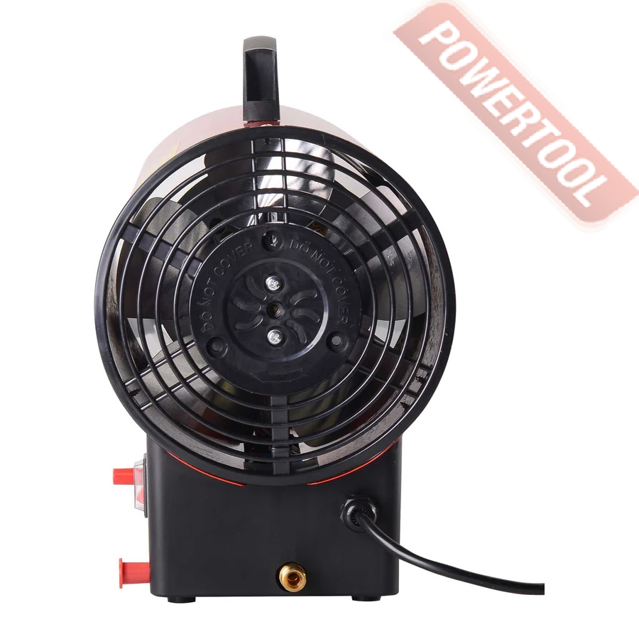 - Нагнетательный осевой вентилятор. Он создает воздушный поток, который выходит через рабочее сопло уже нагретый в теплообменнике прямого типа. Работает от сети 220 В потребляя немного энергии. Электродвигатель вентилятора имеет защиту от перегрева и скачков напряжения сети.