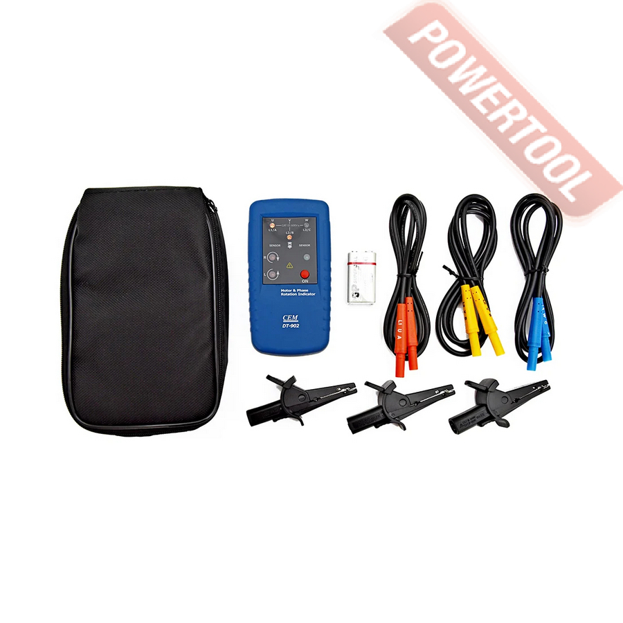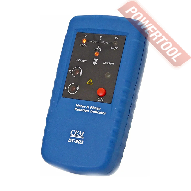 Индикатор чередования фаз CEM DT-902 представляет собой надёжный портативный прибор, предназначенный для определения последовательности фаз и направления вращения трехфазных синхронных и асинхронных двигателей. CEM DT-902 подходит для применения не только в промышленных, но и в бытовых условиях: циркулярные пилы, наждачные и сверлильные станки также имеют трёхфазные системы.