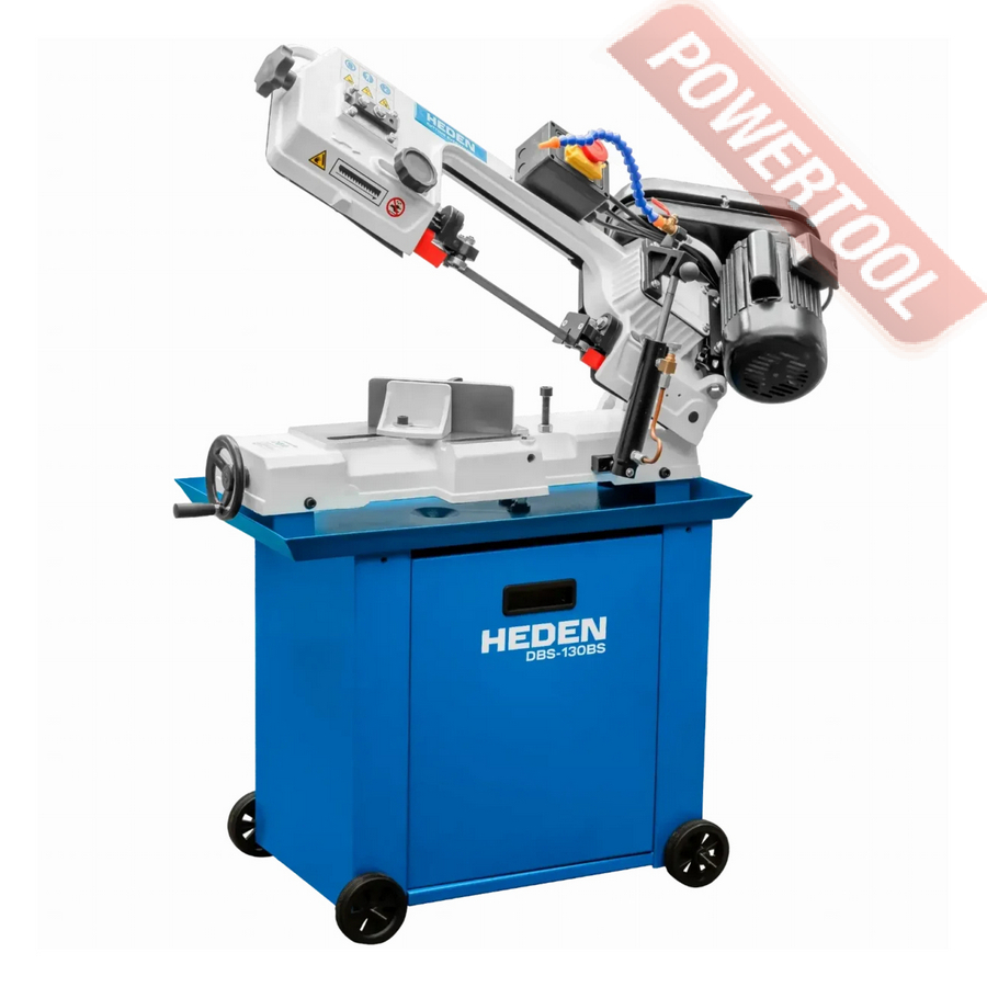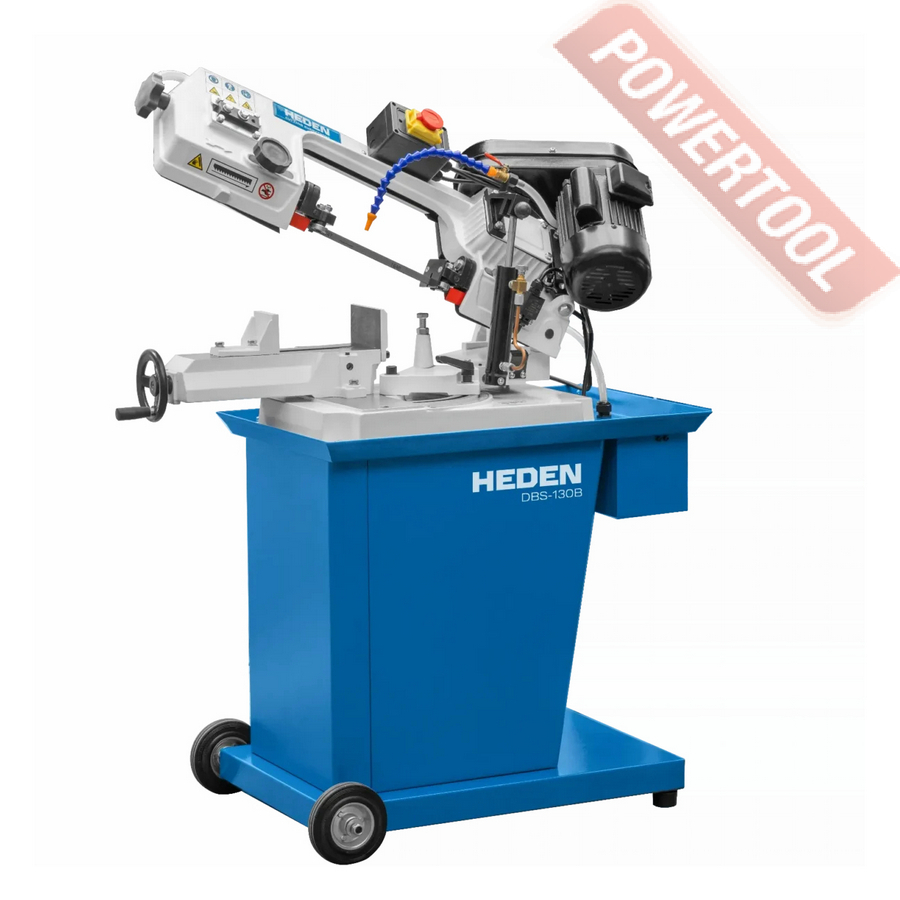 Ленточнопильный станок по металлу с ручным приводом рамы, 550 Вт, 220 В, полотно 1730х13х0,65 мм, скорость полотна 75 м/мин, сечение пропила круг/квадрат/прямоугольник при 90 градусах 130/130х130/180х100 мм, при 45 градусах 115/105х105/115х75 мм, при 60 градусах 70/60х60/70х60 мм, поворот рамы 0-60 градусов, СОЖ 15 л, ручной подъем и опускание рамы, мехнический рабочий цикл, размер ДхШхВ 1030х840х1540 мм, вес 77 кг.