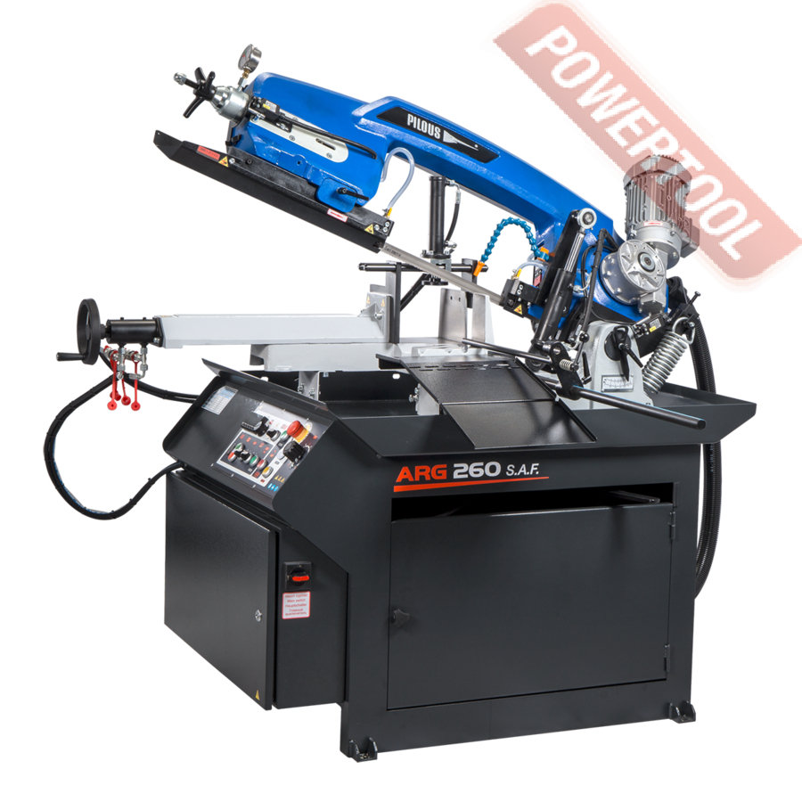 Ленточная пила по металлу PILOUS ARG 300 Plus F - универсальный ленточнопильный станок, предназначен, в основном, для использования в условиях серийного производства, а так же в металлообрабатывающих мастерских и ремонтных цехах производств. Ленточное полотно размерами 27х0.9 представлено на рынке широкой номенклатурой и позволяет обрабатывать огромный спектр материалов, включая нержавеющие и инструментальные стали. Подъем рамы осуществляется вручную, рабочая подача производится под тяжестью собственного веса рамы с возможностью простого регулирования дроссельного клапана подающего гидроцилиндра. После окончания пропила привод пилы автоматически останавливается. Для облегчения подъема рамы, станок оснащен пружинной системой с возможностью регулировки натяжения для изменения усилия необходимого для подъема и опускания рамы.