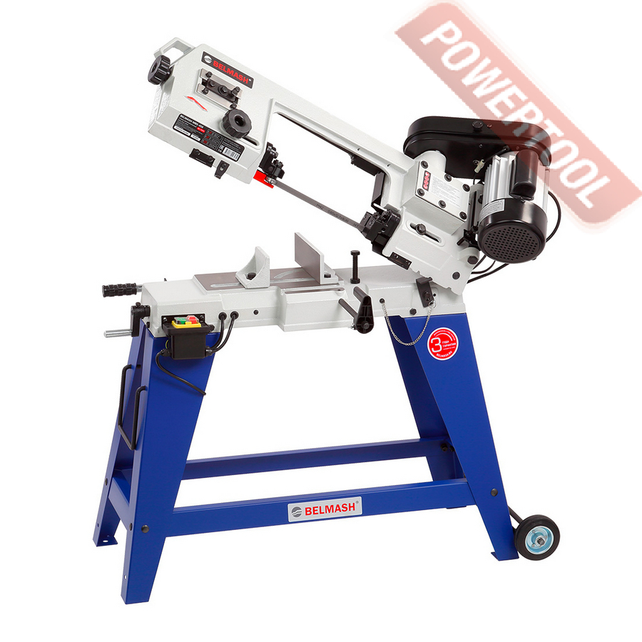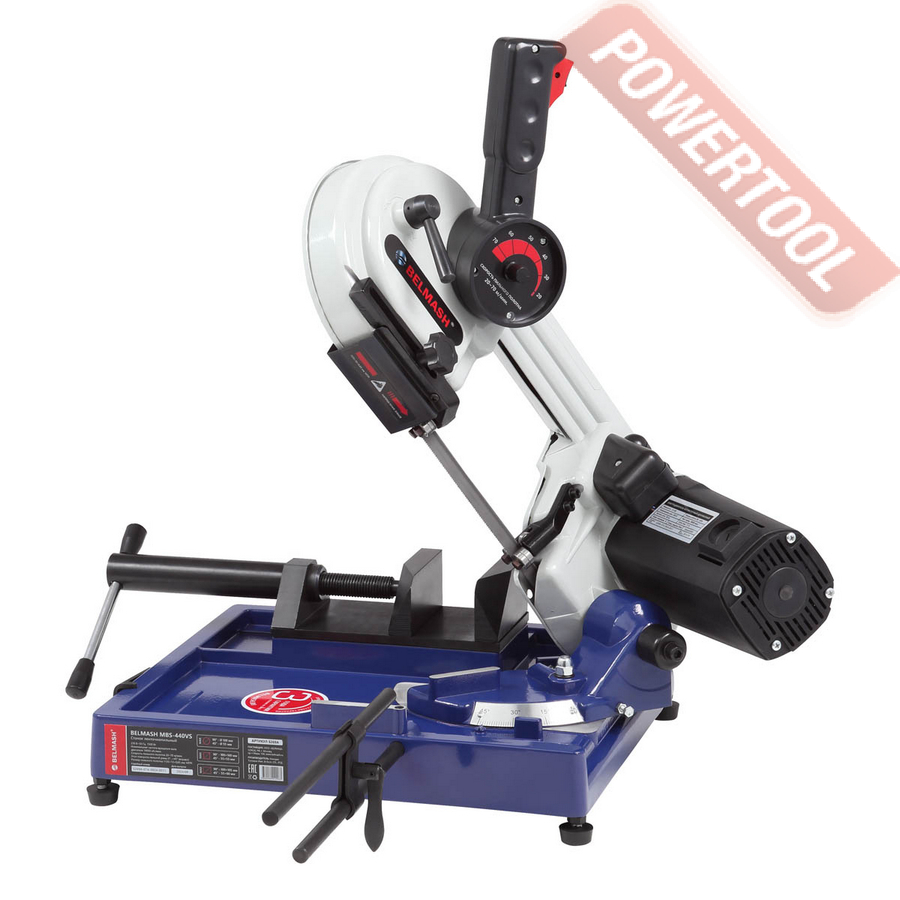 - Тиски. Используя данную модель имеющую быстрорегулируемые тиски для резки под углом, поворачивается рама, а не заготовка. Тиски с системой быстрого отвода ускоряют процесс смены заготовки (ускоренный отвод подвижной губки происходит без вращения маховика). Зажим заготовки осуществляется тисками вручную, подача заготовки - также вручную.
