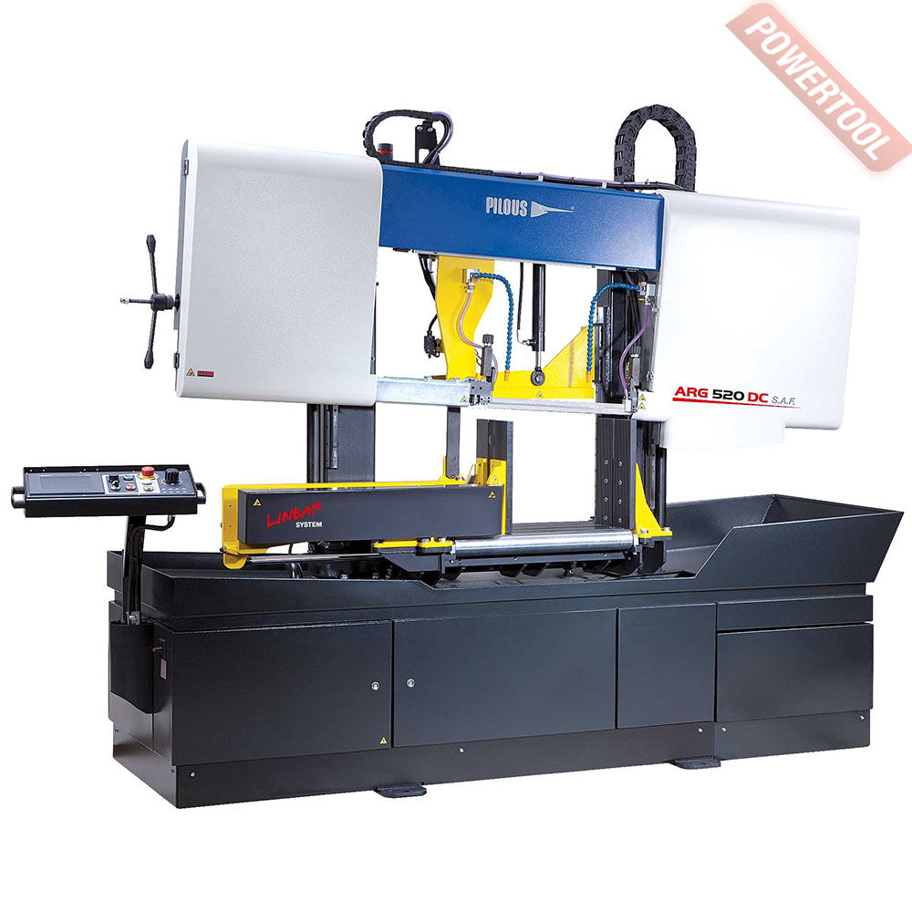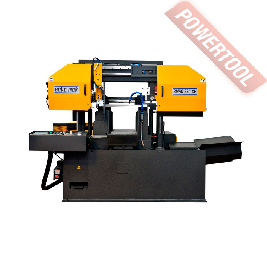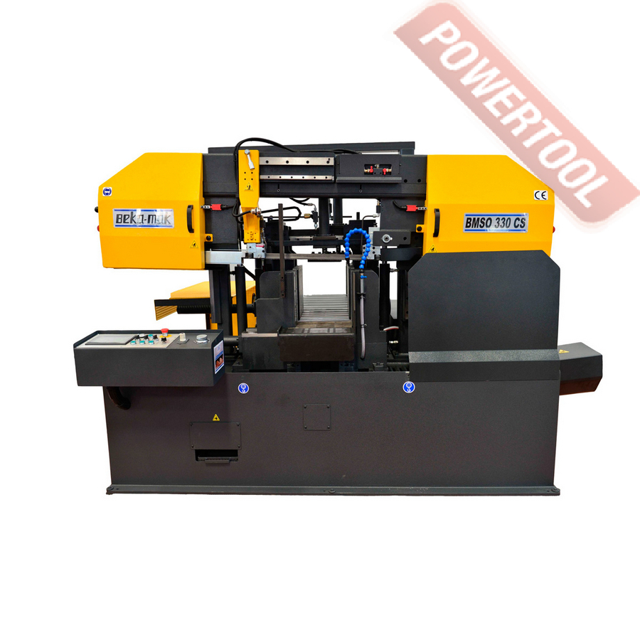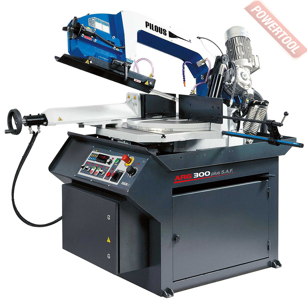 - Автоматический ленточнопильный станок. Станок оборудован высокопроизводительным промышленным гидроагрегатом. Полный цикл пиления запускается при нажатии одной кнопки - происходит зажим материала, подача заготовки в зону реза, включение вращения пилы и подачи СОЖ, распила, выключения пилы и СОЖ, подъем рамы в исходное настраиваемое положение и разжим тисков. Все это, при наличии управляемой гидравлической подачи, позволяет получить максимальную производительность, особенно при пилении больших серий и пилении труднообрабатываемых материалов сплошного сечения. При переключении в ручной режим, можно управлять всеми функциями станка по отдельности.