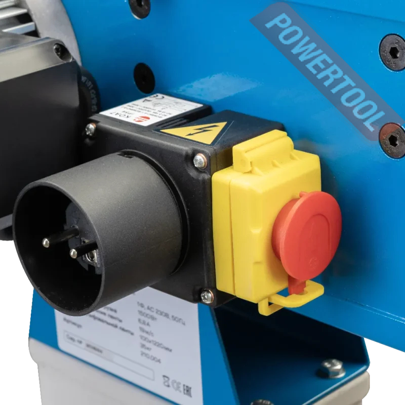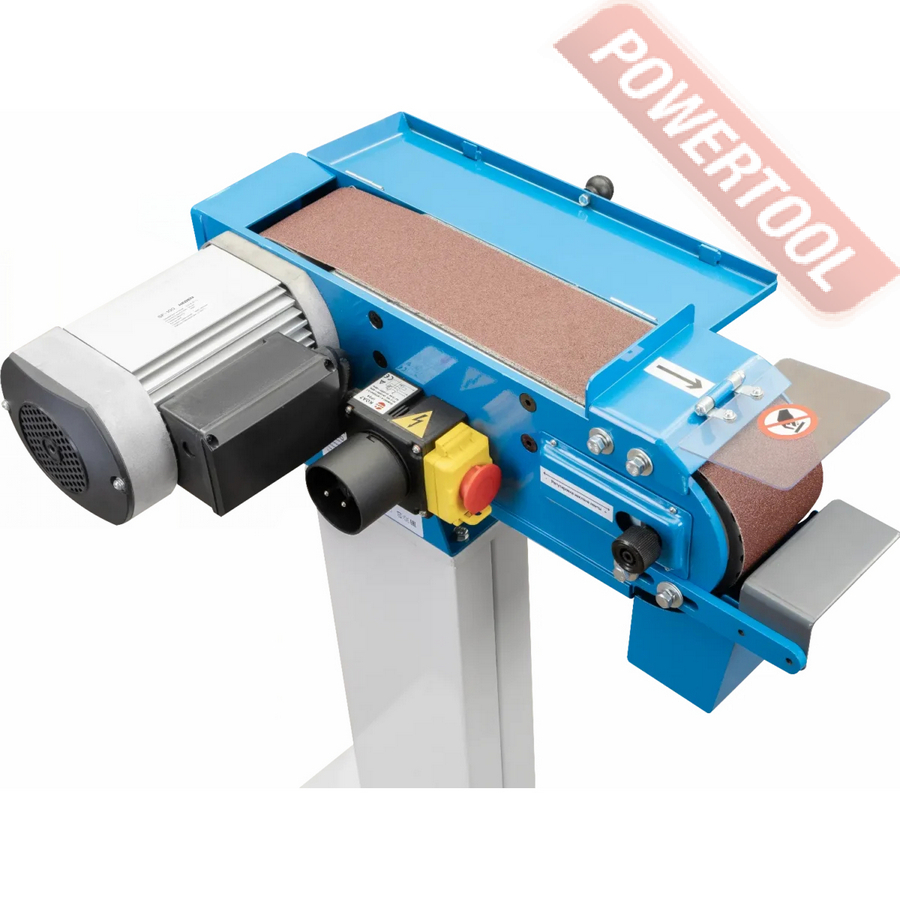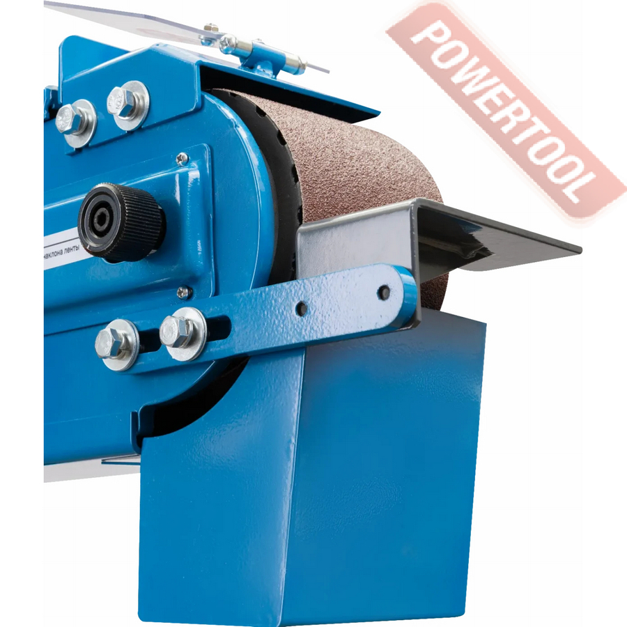 Ленточно-шлифовальный станок по металлу, мощность 1500 Вт, напряжение 220/380 В, шлифлента 100х1220 мм, скорость движения ленты 19 м/с, вес 38 кг, защитное стекло, защитный кожух, подставка, кронштейн, комплект болтов, опора.