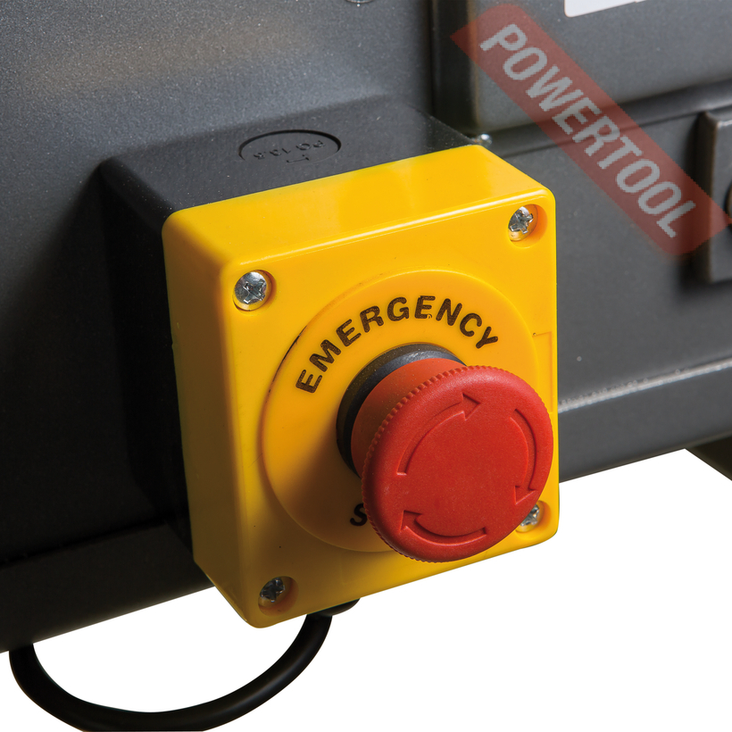 Для удобства оператора рама станка имеет механизм отклонения в пределах от -15 до +30 градусов. При шлифовке на этом станке возможно образование больших объемов пыли и стружки. Для их эффективного отведения предусмотрен встроенный пыле-стружкоотсос с диаметром патрубка 97 мм, также предусмотрено подключение внешнего пылеотсоса, диаметр парубка 100 мм. Для обеспечения безопасности оператора на JBSM-150 применяется несколько технических решений. Так, наиболее вероятная травматичная зона над ведомым роликом закрыта специальным прозрачным экраном. Кроме того, в комплекте поставки имеется крышка верхней части шлифовальной лены, - для тех случаев, когда не требуется обработка крупноразмерных деталей. Рядом с рабочей зоной предусмотрена кнопка аварийного отключения электродвигателя.