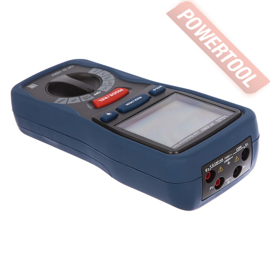 - Точность измерений. Модель DT-5302 применима в профессиональной энергетике и даже в рамках научно-исследовательской деятельности — обеспечивает точный сбор величин сопротивления разных номиналов, считывает даже сверхмалые показатели. Диапазон измерения сопротивления составляет от 0,0001 Ом до 40 МОм.