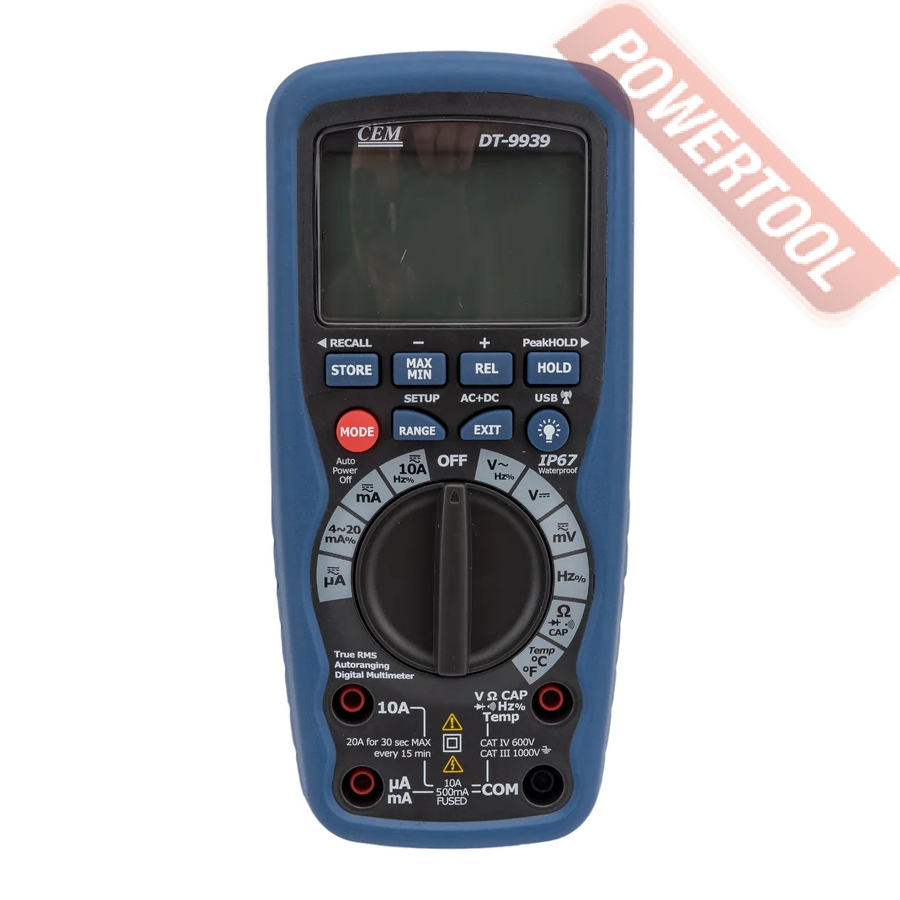 Мультиметр цифровой профессиональный CEM DT-9939 — промышленный прибор, предназначенный для ряда энергетических задач. Устройство может: провести тест диодов, прозвонить электрическую линию для поиска обрыва линии, измерить напряжение и силу переменного и постоянного тока. Также в функционал гаджета входит съем показаний сопротивления, емкости и частот в электроцепи.