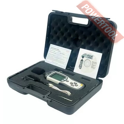 Шумомер цифровой, внесен в госреестр СИ РФ, 2 класс точности, диапазон измерения уровня шума 30-130 дБ, частотный диапазон 31,5-8000 Гц, погрешность измерения уровня шума 1,4 дБ, шаг измерения уровня шума 0,1 дБ, микрофон 1/2 дюйма, A/C-взвешивание, быстрое/медленное время взвешивания 0,125/1 сек, 4-разрядный ЖК-дисплей, регистрация max/min значений, фиксация результатов HOLD, внутренняя память на 32600 значений, подключение к ПК через USB, AC/DC разъемы, питание от 1 батарейки 9В тип Крона, время работы до 30 ч, автоотключение через 15 мин, габариты ДхШхВ 278х76х50 мм, вес 0,35 кг, элементы питания, штатив, диск с ПО, USB-кабель, отвертка, кейс.