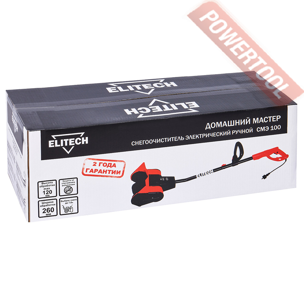 Снегоуборщик электрический ELITECH СМЭ 100 предназначен для уборки свежевыпавшего снега с ровных и твердых поверхностей, с соблюдением правил технической безопасности и рекомендаций по эксплуатации, указанных в прилагаемом паспорте.