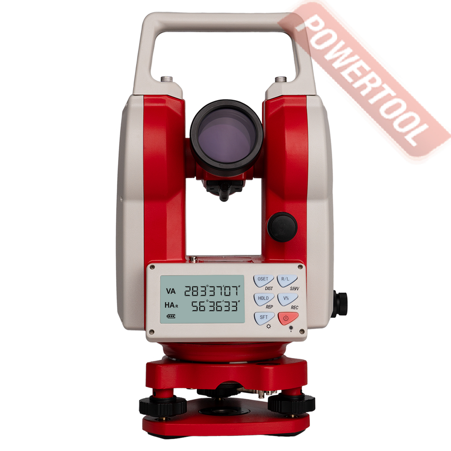 - Большой матричный двухстрочный жидкокристаллический дисплей может отображать вертикальный и горизонтальный углы одновременно, а встроенная система подсветки позволяет работать в условиях с пониженной освещенностью. Для точной установки теодолита есть лазерный отвес