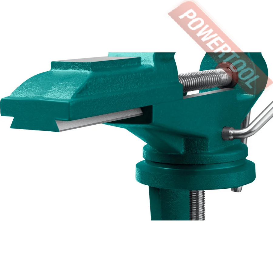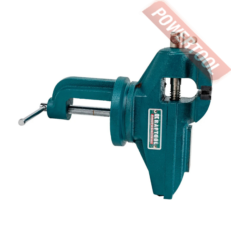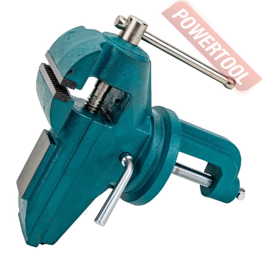 Тиски слесарные прецизионные, ширина губок 65 мм, рабочий ход 90 мм, наковальня, струбница, функция поворота 360 градусов, вес 4,3 кг.