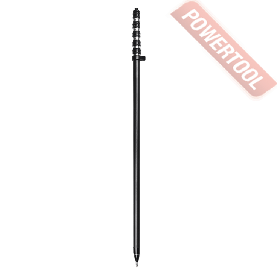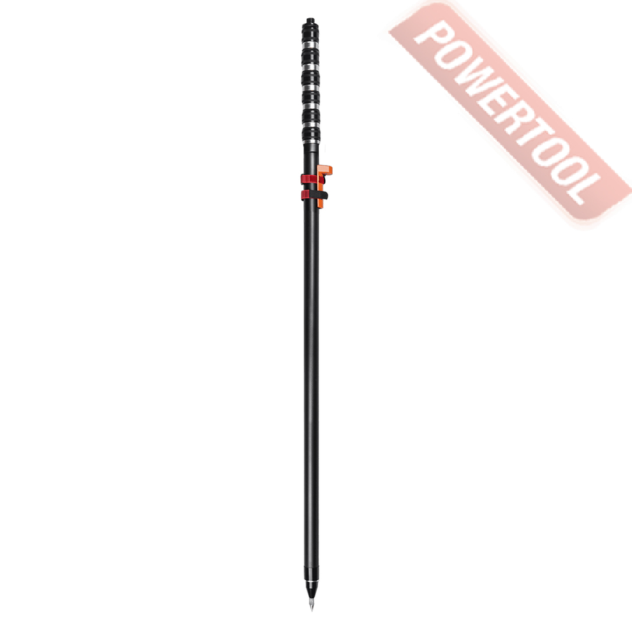 Легкая телескопическая веха для установки призм на высоте до 3,6 м, фиксация высоты осуществляется вертикальным металлическим зажимом-клипсой, резьбовое соединение 5/8 дюйма, пузырьковый уровень, вес 1,8 кг.