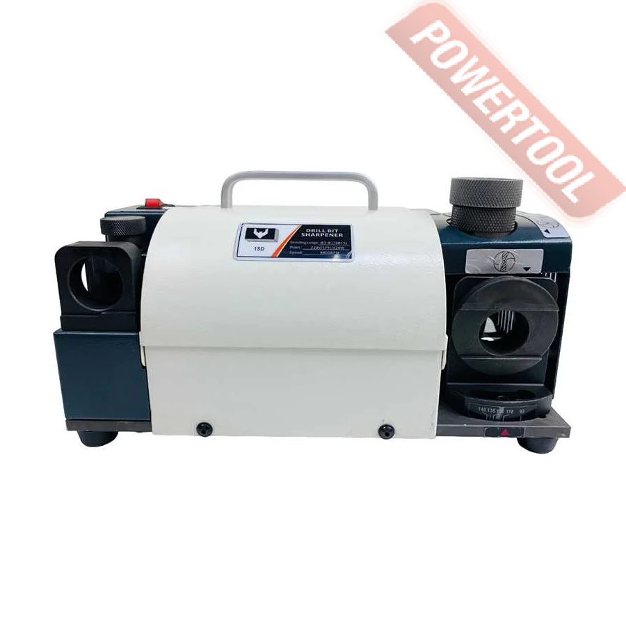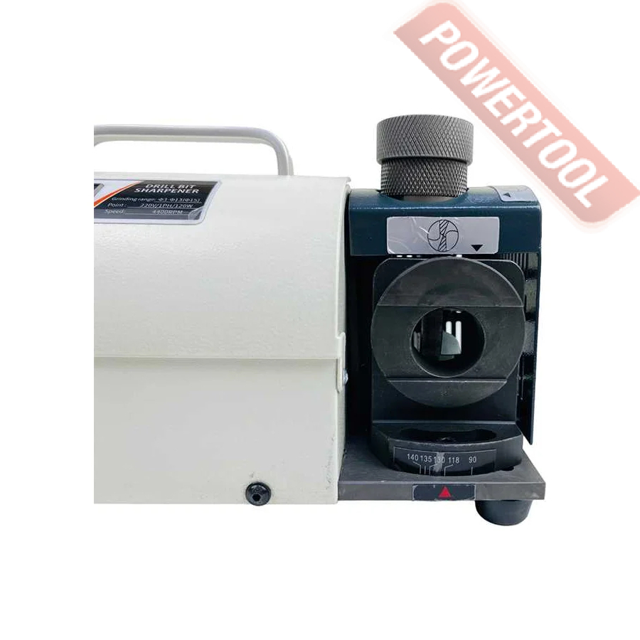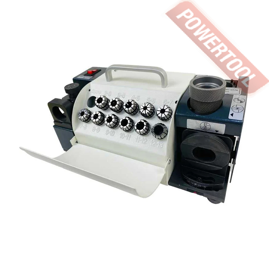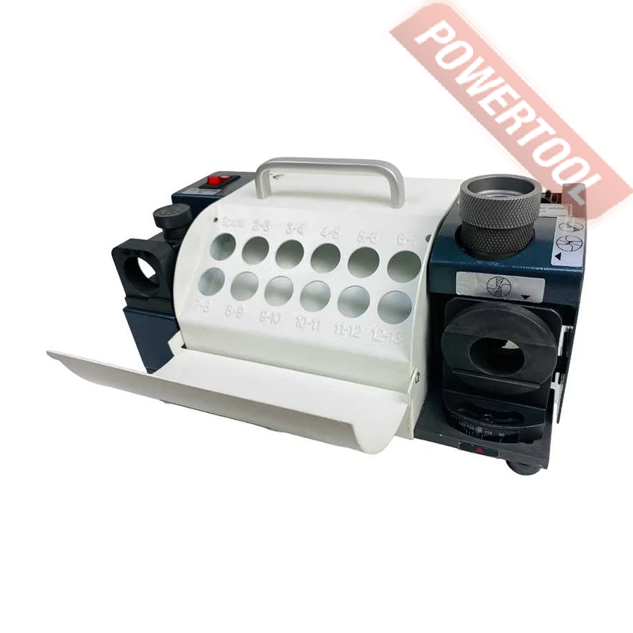Заточной станок для заточки сверл, мощность 120 Вт, напряжение 220 В, число оборотов 4800 об/мин, диаметр затачиваемых сверл 3-13 мм, угол заточки сверла 100-135 градусов, функция регулировки размера точки, вес 10 кг, заточной диск CBN для быстрорежущей стали, цанговый патрон ER20, комплект цанг ER20 3-13 мм 11 шт, набор шестигранников.