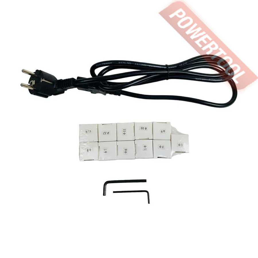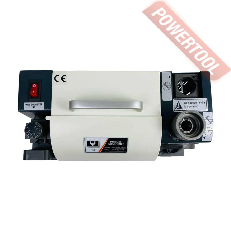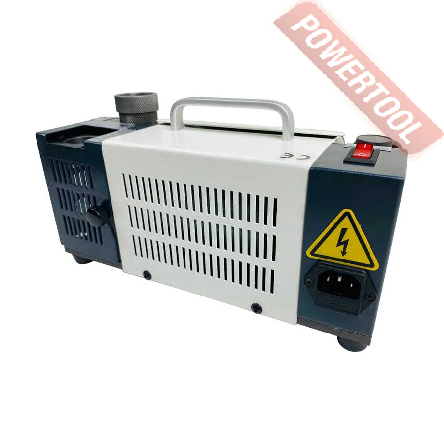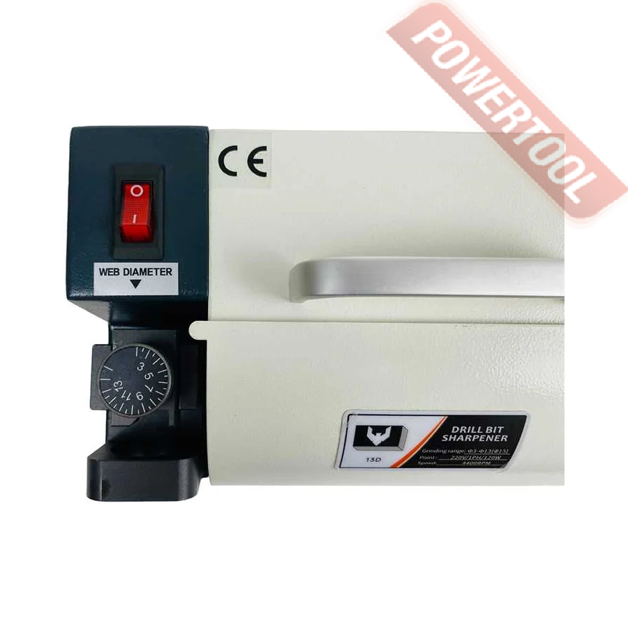 Заточной станок для заточки сверл, мощность 120 Вт, напряжение 220 В, число оборотов 4800 об/мин, диаметр затачиваемых сверл 3-13 мм, угол заточки сверла 100-135 градусов, функция регулировки размера точки, вес 10 кг, заточной диск CBN для быстрорежущей стали, цанговый патрон ER20, комплект цанг ER20 3-13 мм 11 шт, набор шестигранников.