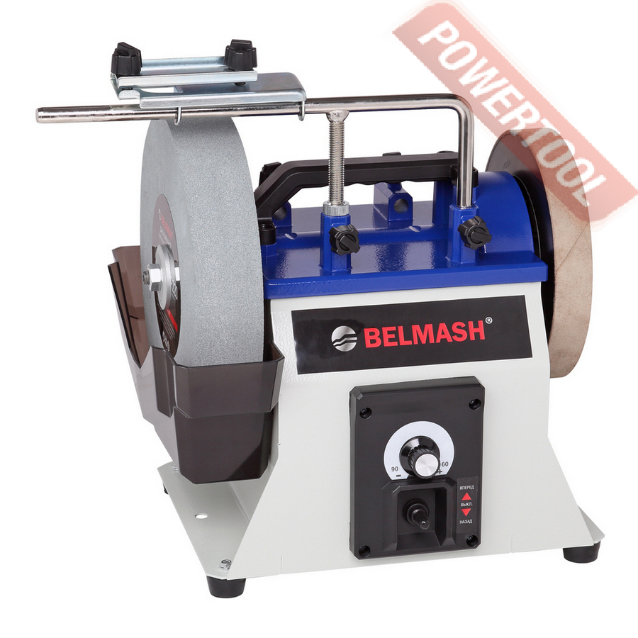 - Диаметр шлифовального круга 200 мм и шириной 25 мм. Посадочный диаметр круга 16 мм. Частота вращения кругов 2800 об/мин.